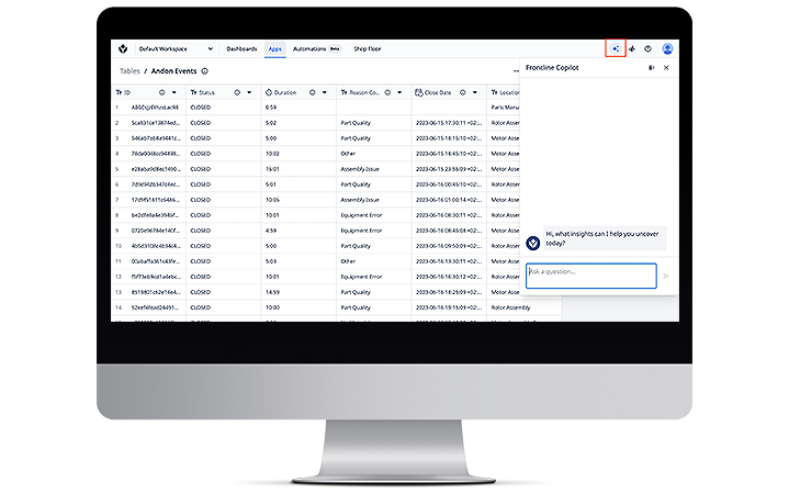 • Contextual AI interactions with machines, sensors, and apps, such as “What is the OEE of line 3 today?” – The AI-based response with live data